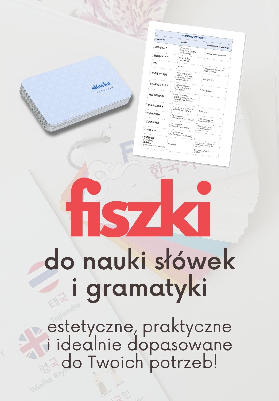 Producent Azjatyckie JęzykiKoreańskie fiszki na kółku + lista słówek | Fiszki koreański - bloczek do samodzielnego wypełnienia | Lista - koreańskie słówka