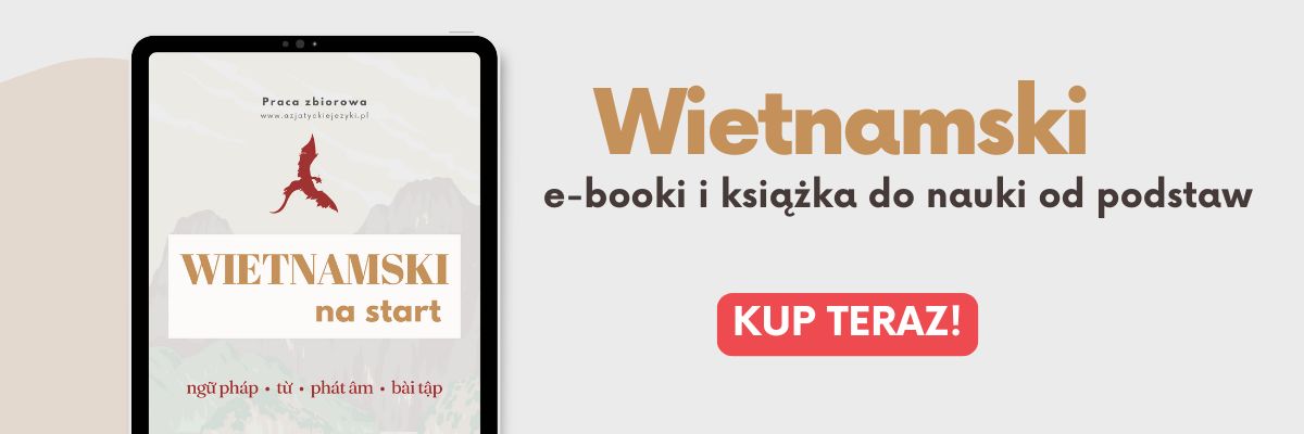 Oferujemy m.in. kompleksowy podręcznik do nauki wietnamskiego, czyli Wietnamski na start. Jest napisany po polsku, omawia najważniejsze aspekty gramatyczne, zawiera rozbudowany słownik i mnóstwo autorskich zadań. W naszym sklepie znajdziesz też różne e-booki do nauki wietnamskiego, a nawet specjalną książeczkę dla dzieci. Zachęcamy również do sprawdzenia dostępnych kursów z wietnamskiego.