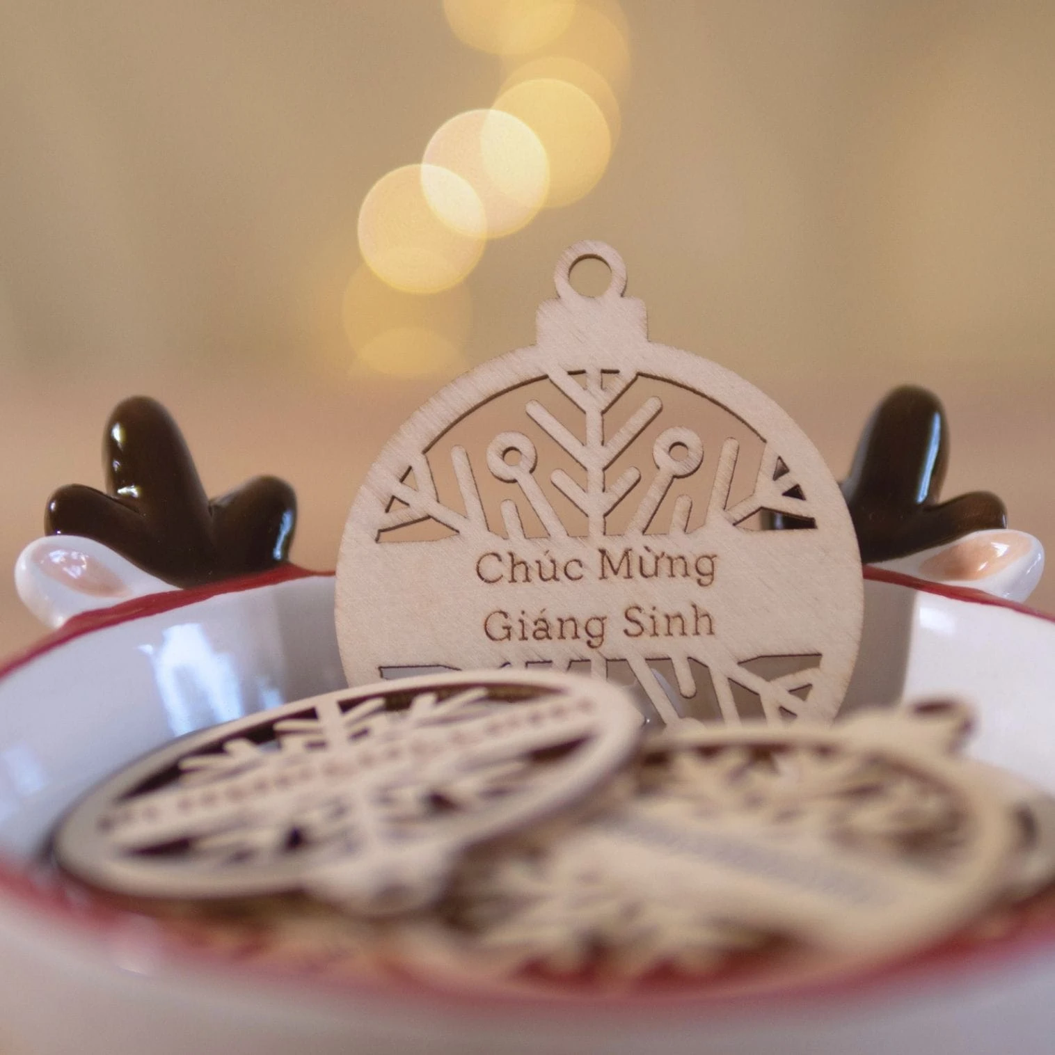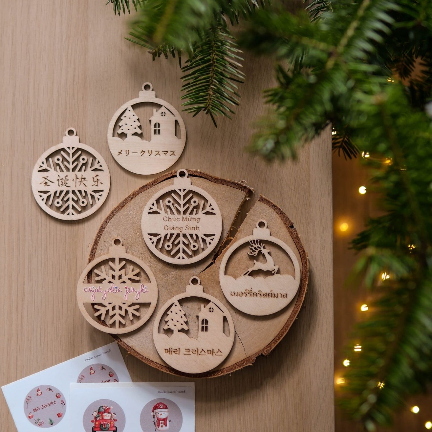 Bombki z napisem 'Wesołych Świąt' w 5 językach do wyboru: