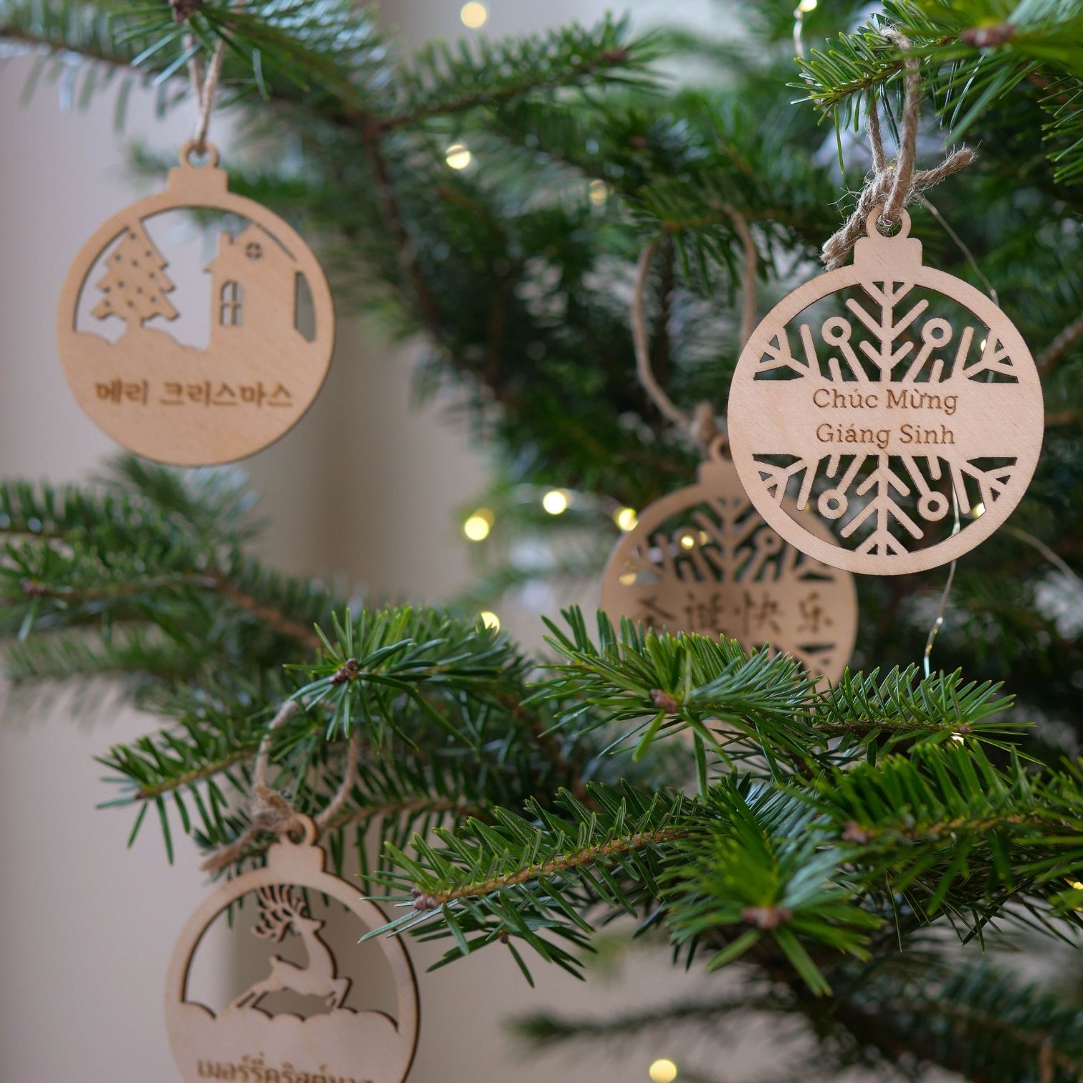 Bombki z napisem "Wesołych Świąt" po japońsku, tajsku, koreańsku, chińsku - OSTATNIE SZTUKI, produkt wycofywany z oferty