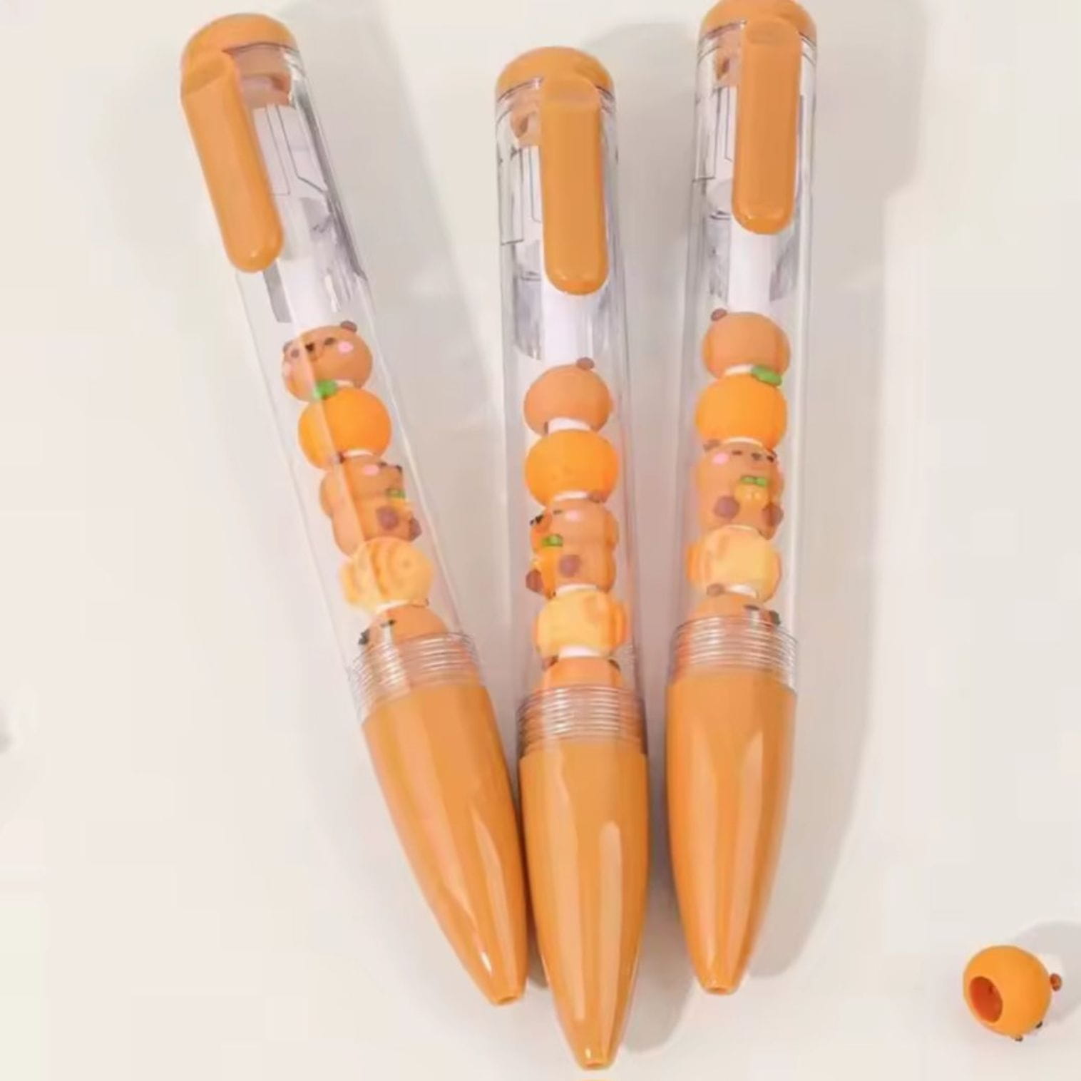 - Długopis z kapibarą ze zdejmowanymi koralikami - nieścieralny, kolor tuszu czarny, wkład 0,5 mm.