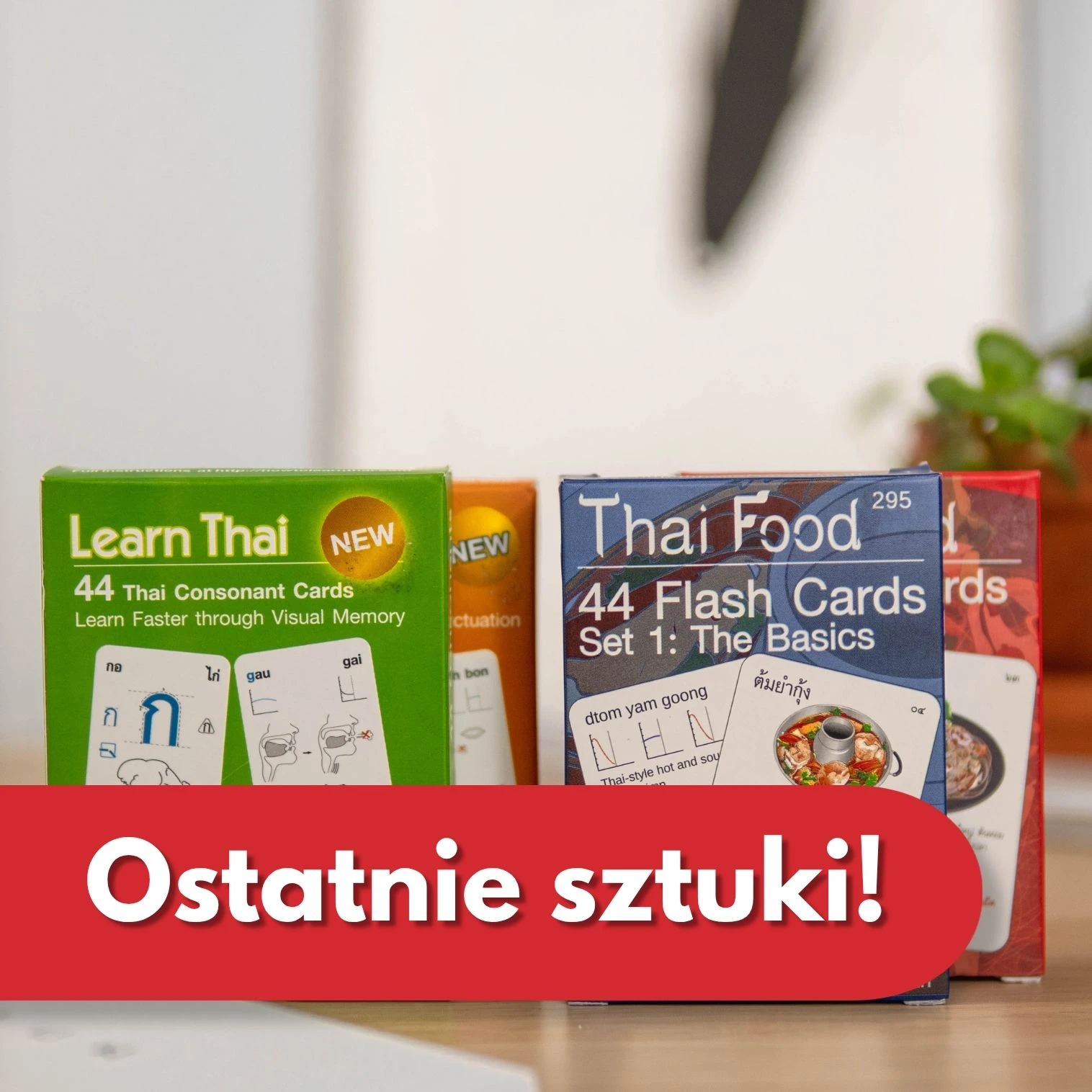 Karty możesz zakupić w zestawie z fiszkami do nauki samogłosek oraz spółgłosek w języku tajskim.