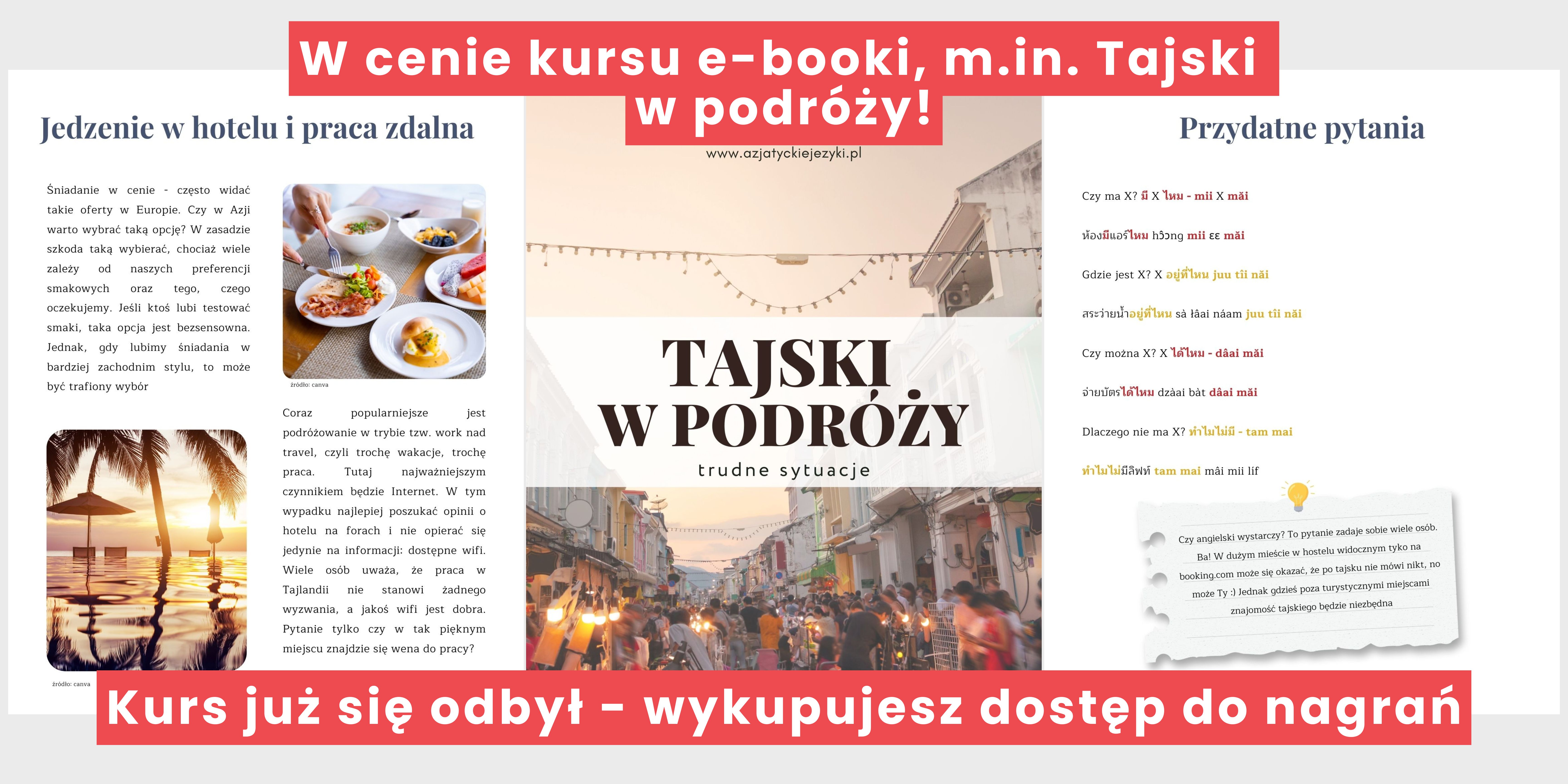 Kurs 'tajski w podróży' | Kurs języka tajskiego przed podróżą | 15 lekcji tajskiego + ebooki